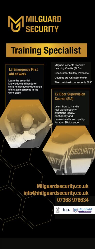 Milguard Security provides fully licensed security services delivered by military and ex-military professionals, combining discipline, reliability and a professional approach to achieve real results for clients across the UK.